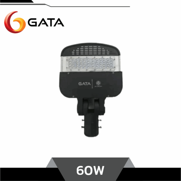โคมไฟถนน LED 60W GATA Type III มีทั้งแสงเหลือง Warm White 3000K และแสงขาว Daylight 6500K โคมไฟถนนที่จะช่วยประหยัดไฟฟ้าได้มากถึง 80% กินไฟน้อยแต่ให้ความสว่างมาก ไม่สามารถรี่ไฟได้ และ มีน้ำหนักเบาสามารถติดตั้งได้ง่าย แสงที่ออกมาจากตัวโคมไม่มีรังสี ยูวี (UV) ที่เป็นอันตรายต่อผู้ใช้ สามารถทำงานได้ในอุณหภูมิ -20 ถึง 50 องศา เหมาะสำหรับติดตั้งในบริเวณที่ต้องการความสว่าง เช่น บริเวณทางเดิน อาคารจอดรถ สวนสาธารณะ เป็นต้น